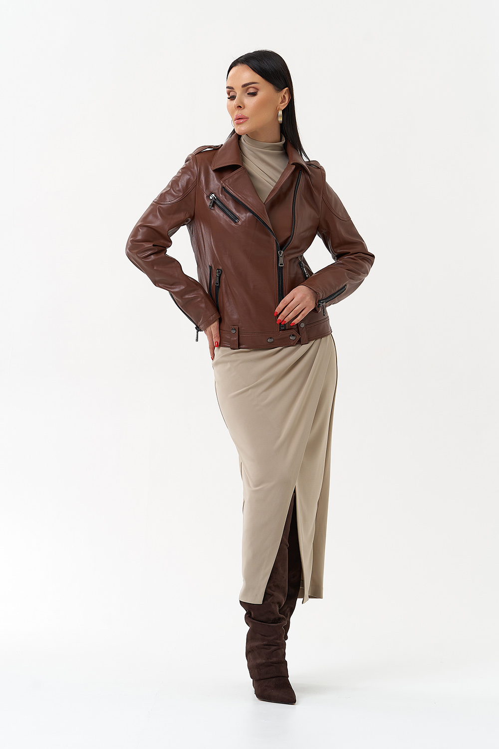 Куртка из натуральной кожи насыщенного коричневого цвета