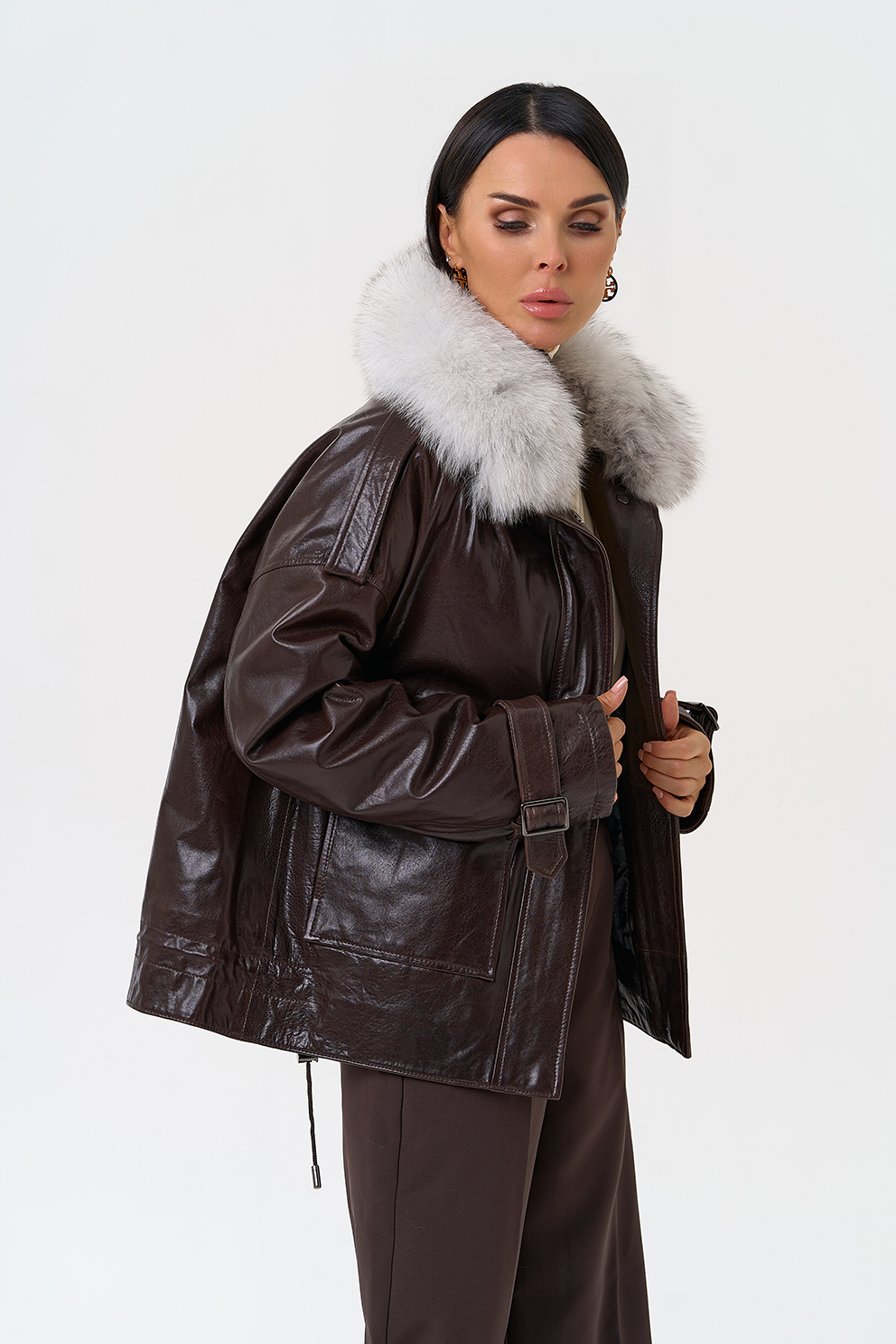 Тип ворота - отложной воротник, отделка песец