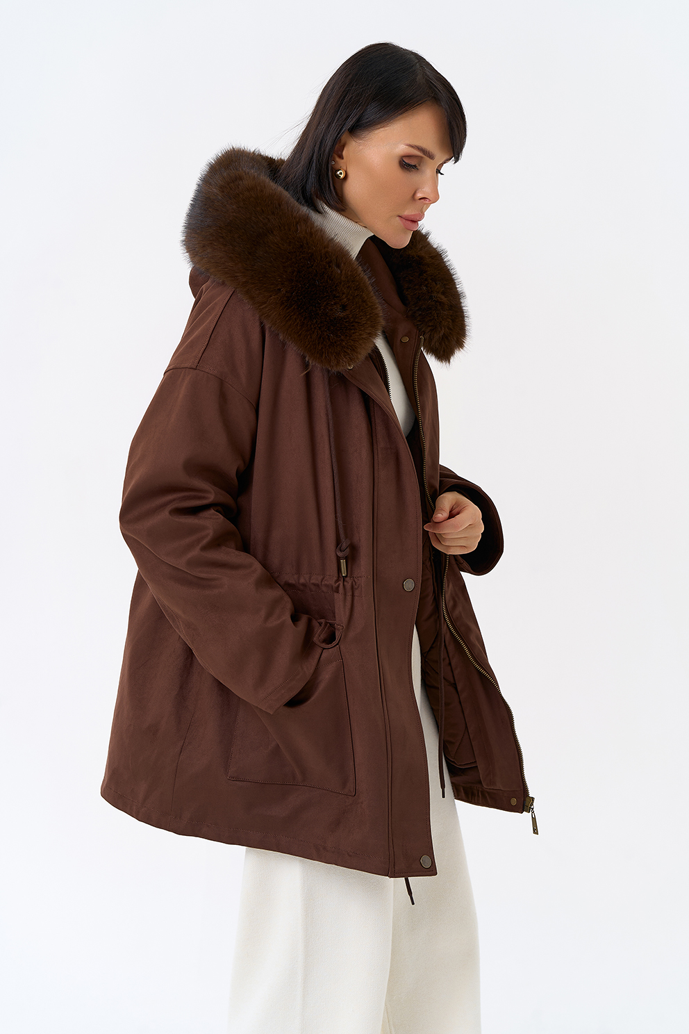 Отделка воротника - эко мех, цвет коричневый