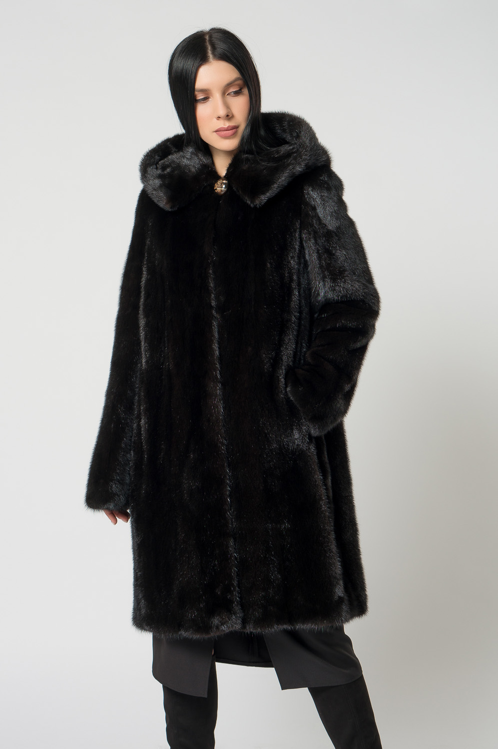 Шуба из норки с капюшоном, кулиска