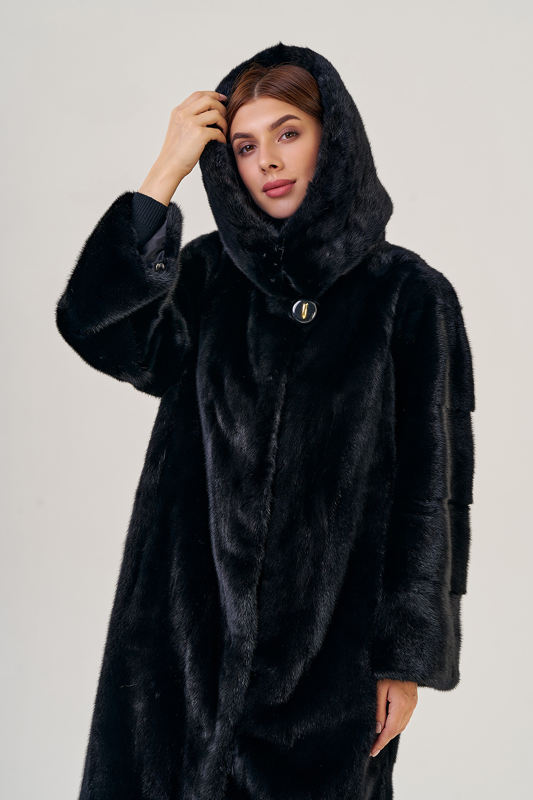 Норковая шуба с капюшоном, фасон -"рубашка".